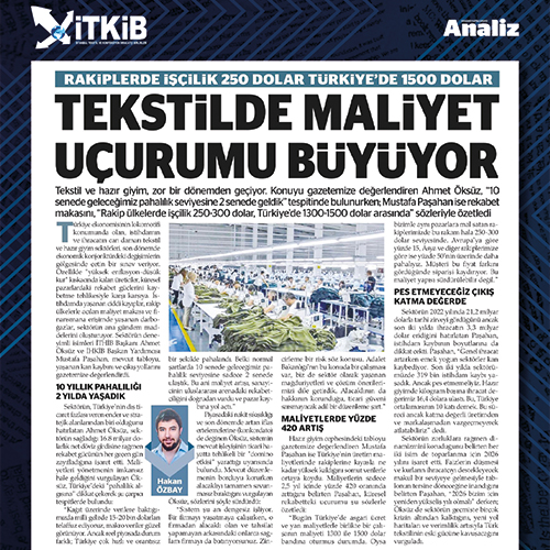 İstanbul Tekstil ve Hammaddeleri İhracatçıları Birliği (İTHİB) Başkanımız Sayın Ahmet Öksüz ile İstanbul Hazır Giyim ve Konfeksiyon İhracatçıları Birliği (İHKİB) Başkan Yardımcımız Sayın Mustafa Paşahan, sektörümüzün güncel maliyet yapısı, rekabet koşulları ve ihracat dinamikleri üzerine Analiz Gazetesi’ne önemli değerlendirmelerde bulundu.