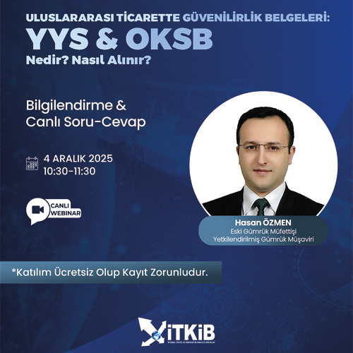 Uluslararası Ticarette Güvenilirlik Belgeleri Uluslararası ticarette güvenilirlik sağlayan ve firmaların gümrük işlemlerini hızlandırarak operasyonel yüklerini azaltan Yetkilendirilmiş Yükümlü Statüsü (YYS) ve Onaylanmış Kişi Statü Belgesi (OKSB) hakkında tüm detaylar bu webinarda sizleri bekliyor!