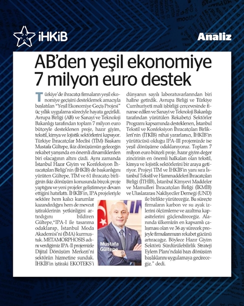 AB'den İjracatçıya 7 Milyon Euro Yeşil Ekonomi Desteği