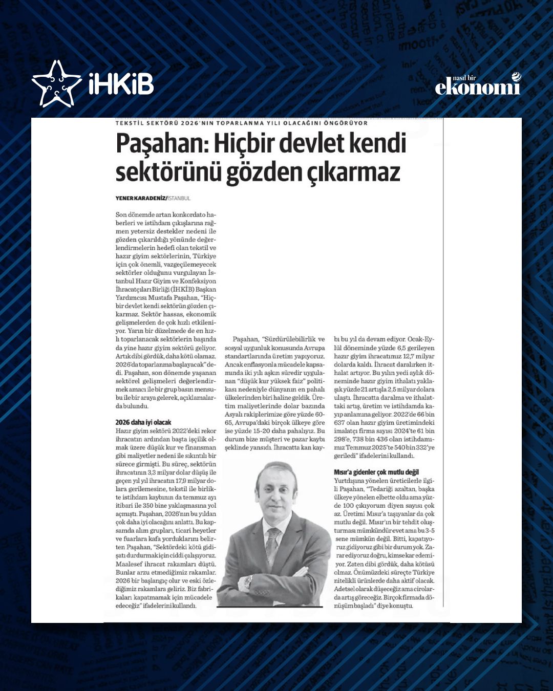 Paşahan : Hi̇çbi̇r Devlet Kendi̇ Sektörünü (Teksti̇l) Gözden Çıkarmaz