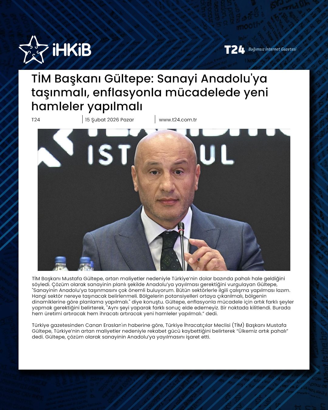 TİM Başkanı Gültepe: Sanayi Anadolu'ya taşınmalı, enflasyonla mücadelede yeni hamleler yapılmalı