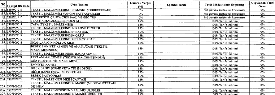 - Ek 1’de yer alan Türkiye’nin uygulayacağı taviz ve indirim listesinde tekstil ve konfeksiyon ürünleri yer almamaktadır. (50. – 63. Fasıl arası)