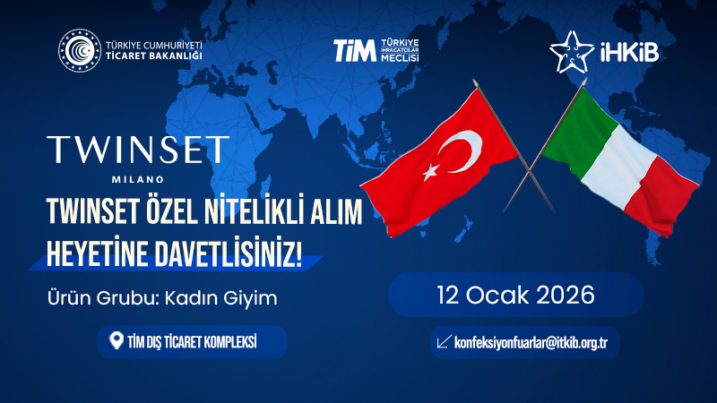 İtalya merkezli TWINSET firmasının yetkilileri ile Özel Nitelikli Alım Heyeti programı kapsamında İstanbul’da ikili iş görüşmeleri gerçekleştirilecektir.