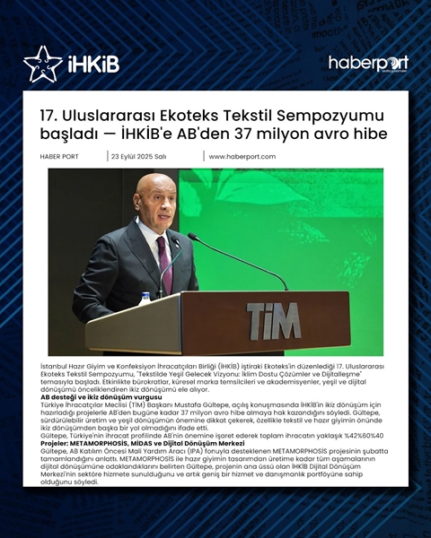17. Uluslararası Ekoteks Tekstil Sempozyumu başladı: İHKİB projelerine AB'den 37 Milyon Avro Hibe