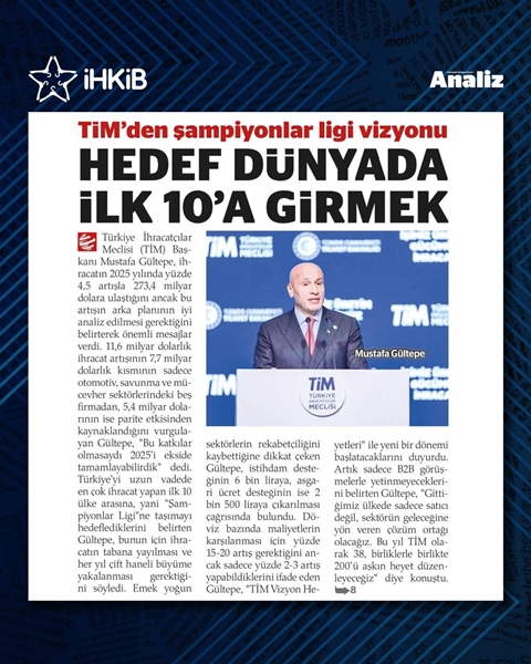 TİM'den Şampiyonlar Ligi Vizyonu Hedef Dünyada İlk 10'a Girmek