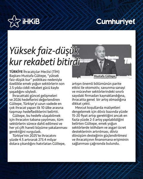 TİM: 'Yüksek Faiz Düşük Kur'la Rekabetçilik Zayıfladı