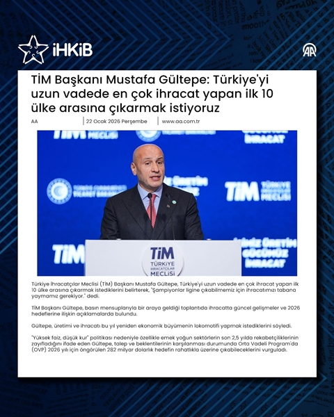 TİM Başkanı Mustafa Gültepe: Türkiye'yi uzun vadede en çok ihracat yapan ilk 10 ülke arasına çıkarmak istiyoruz