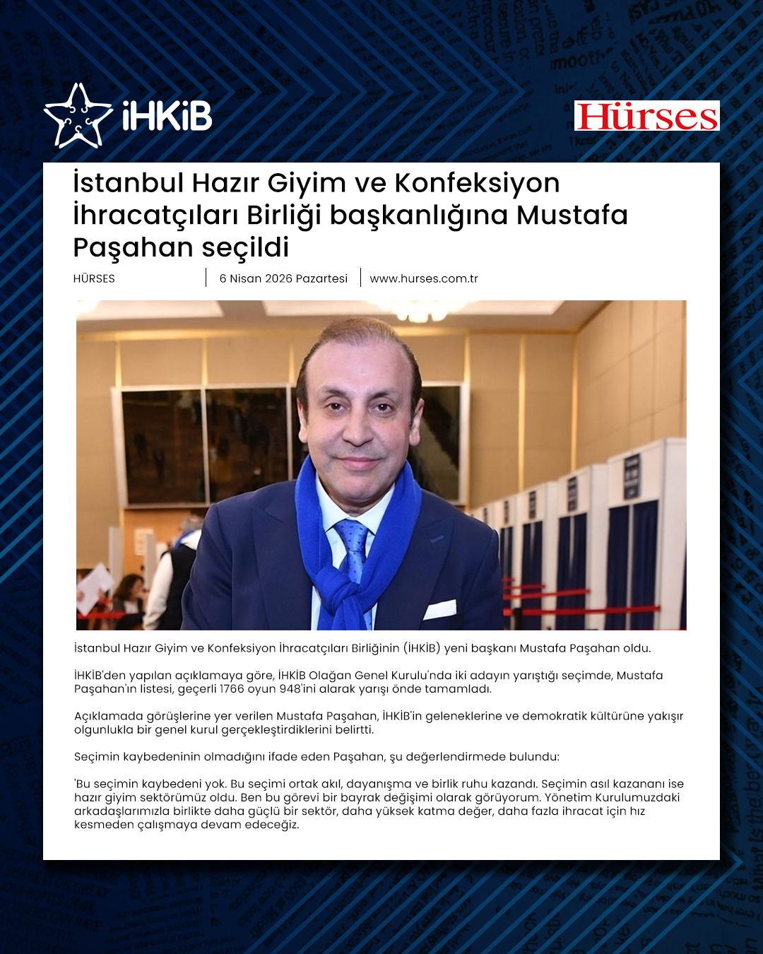 İstanbul Hazır Giyim ve Konfeksiyon İhracatçıları Birliği başkanlığına Mustafa Paşahan seçildi