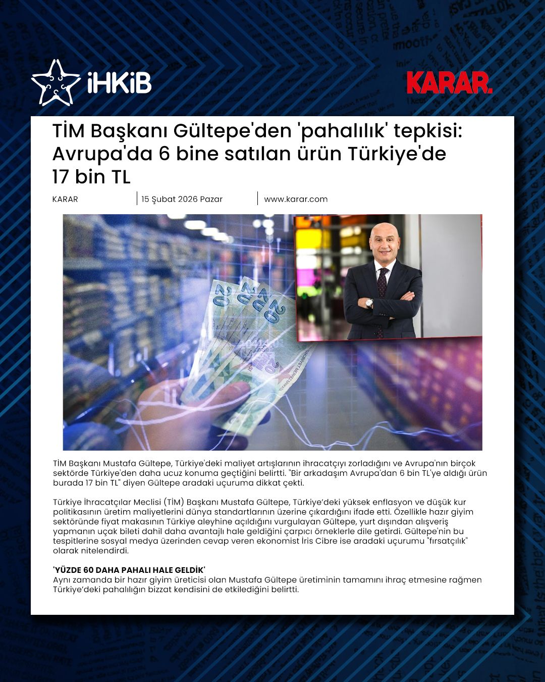 TİM Başkanı Gültepe'den 'pahalılık' tepkisi: Avrupa'da 6 bine satılan ürün Türkiye'de 17 bin TL