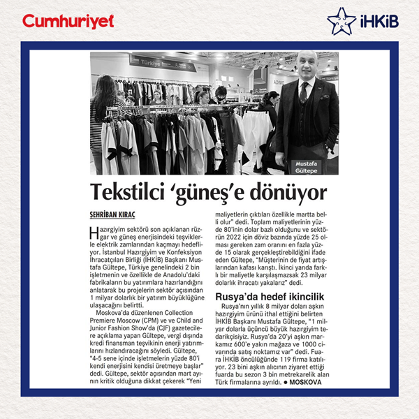 TİM Başkanı Gültepe : Hazır Giyimde 40 Milyar Dolarlık İhracat Hedefimiz Var
