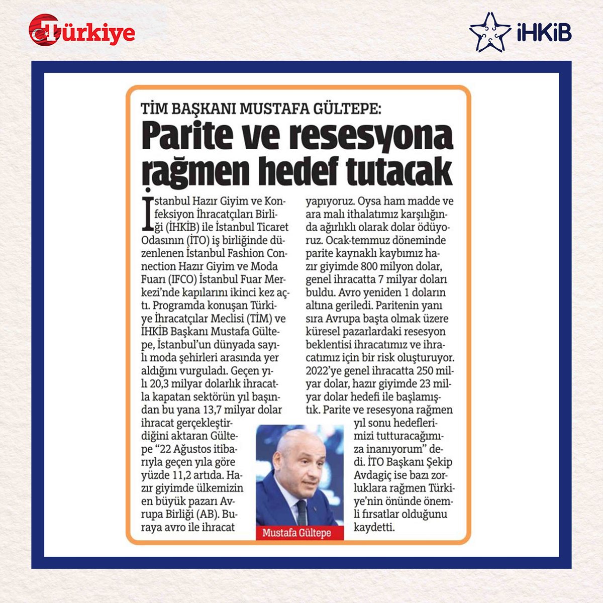 TİM Başkanı Mustafa Gültepe : Parite ve Resesyona Rağmen Hedef Tutacak