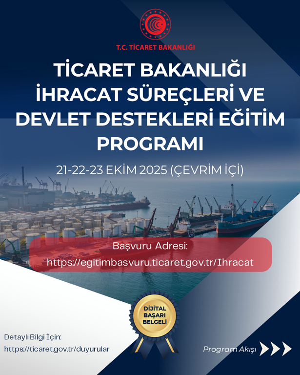 Türkiye İhracatçılar Meclisinden (TİM) alınan yazıda, Ticaret Bakanlığı İhracat Genel Müdürlüğü’nden alınan yazıda, Bakanlıklarının görev alanı dahilindeki konularda iş çevrelerinin bilgilendirilmesi amacıyla 2011 yılından itibaren düzenlenmekte olan, ihracatın gelişmesi ve tabana yayılması açısından önem arz eden Dış Ticaret Bilgilendirme Seminerlerine, 2025 yılında “Ticaret Bakanlığı İhracat Süreçleri ve Devlet Destekleri Eğitim Programı” adıyla devam edildiği bildirilmektedir.