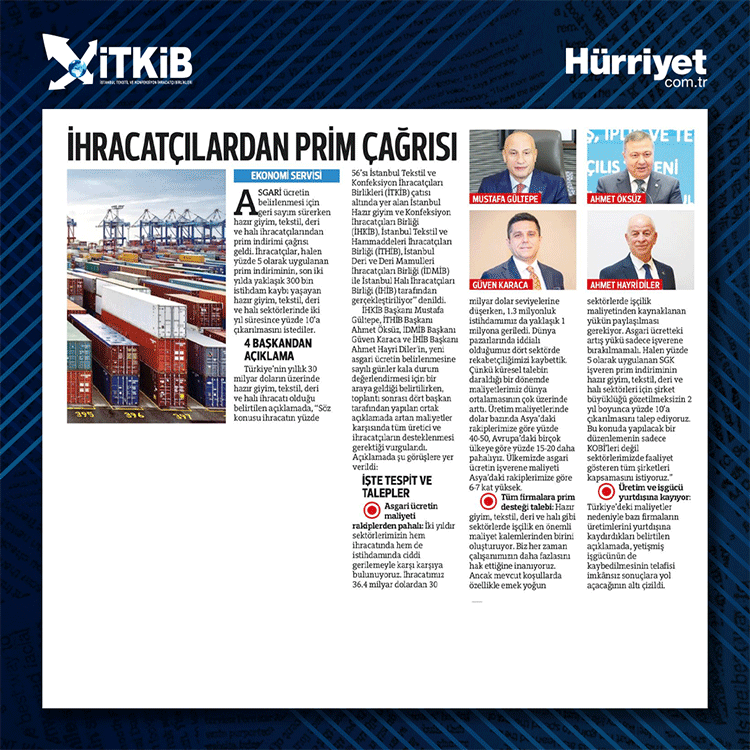 İHKİB, İTHİB, İDMİB ve İHİB Başkanlarımızın yaptıkları ortak açıklamada, artan maliyetler karşısında tüm üretici ve ihracatçıların desteklenmesi gerektiği vurgulandı.