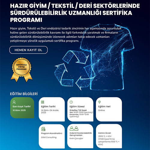 Hazır Giyim / Tekstil / Deri Sektörlerinde Sürdürülebilirlik Uzmanlığı Sertifika Programı Hazır Giyim / Tekstil / Deri Sektörlerinde Sürdürülebilirlik Uzmanlığı Sertifika Programı Başlıyor!