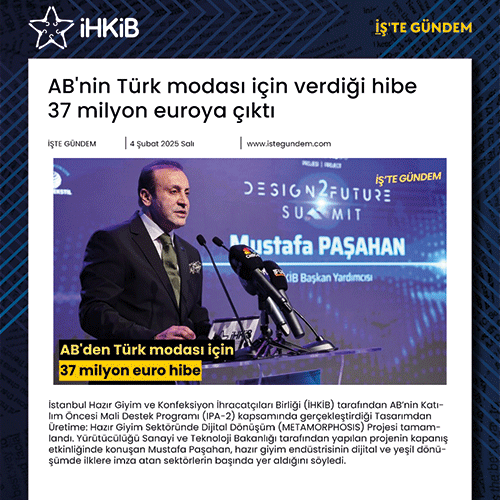 Başkan Yardımcımız Sayın Mustafa Paşahan, Avrupa Birliği Katılım Öncesi Mali Destek Programı (IPA II) kapsamındaki Tasarımdan Üretime: Türkiye’de Hazır Giyim Sektöründe Dijital Dönüşüm Metamorphosis Projemizin kapanış etkinliği Design2Future konferansında, sektörümüzün dijital ve yeşil dönüşüm alanlarına odaklandığını belirtti.