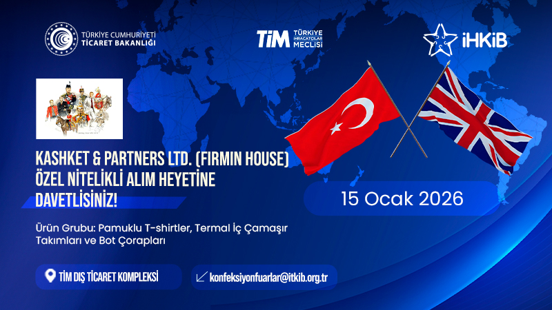 Birleşik Krallık merkezli Kashket & Partners LTD (Firmin House)firmasının yetkilileri ile Özel Nitelikli Alım Heyeti programı kapsamında İstanbul’da ikili iş görüşmeleri gerçekleştirilecektir.