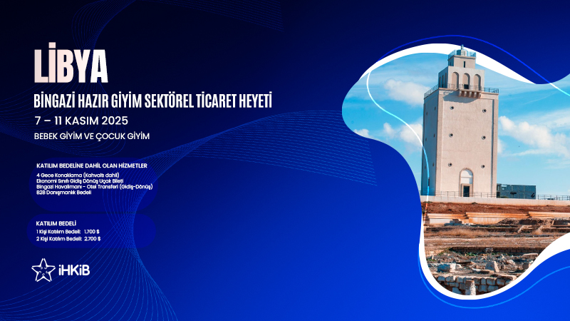 5973 Sayılı Cumhurbaşkanı Kararı ile yürürlüğe konulan İhracat Destekleri Hakkında Karar kapsamında, 7 - 11 Kasım 2025 tarihlerinde Libya’nın Bingazi şehrinde çocuk giyim ve bebek giyim firmalarımıza yönelik Libyalı ithalatçı firmaları hedefleyen ikili iş görüşmeleri planlanmaktadır.